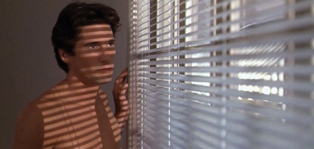 The most interesting films tend to be those that go all the way into a gnarly little dreamworld. Not that the dreamworld of American Gigolo seems gnarly at first. The story begins by reveling in the easy brilliance of California sunshine. There’s no glare. No one sweats. A breeze is always caressing the images, playing across all those nouveau-riche accoutrements: the boxy, modernist seaside houses that are overwhelmingly windowed, the thin ties and Armani clothes, the handsome but not aggressively sporty car, the tasteful antiques. The indoor spaces haven’t been air-conditioned all to hell. Sometimes the door just stands open, and you walk right in. Noir shadows creep in later, when the film’s suspense begins to slide toward a violent dénouement that is, I think, more than a little silly. That doesn’t really matter. Then there’s the strangely beatific ending.